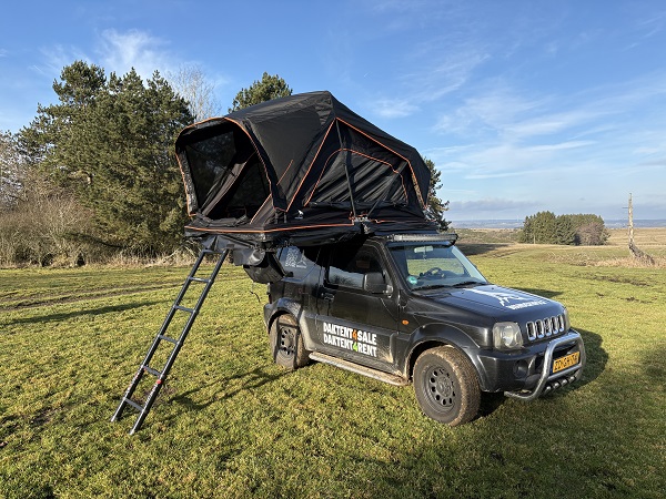 Ga op avontuur zonder grenzen en ervaar de vrijheid met deze Suzuki Jimny 4x4 met comfortabele Wanderwolf Yosemite daktent.
